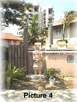 5. Picture 5 shows the same house but from the front. Do you see two "Chinese warriors" guarding both sides of the main gate? On the left, the owner planted a few trees to shield the left side of the house which has a main road running parallel beside it.
